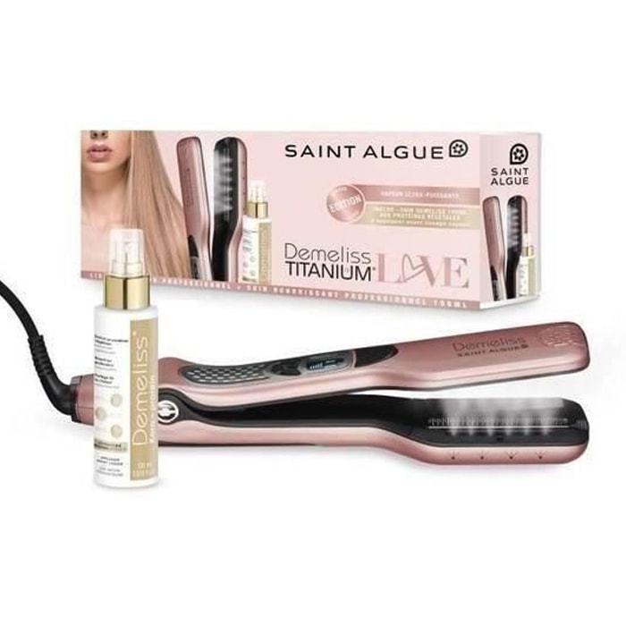 Преса за изправяне на коса с пара Demeliss TITANIUM – Благодарение на титаниевото покритие и възможност за използване на пара, Demeliss Titanium e свръхефективен уред за изправяне, подходящ дори и за най-плътните и къдрави коси. Включва голям 40 мл. резервоар за вода, позволявайки генериране на пара за повече от 20 мин. Дифузeрите за пара правят косата копринено гладка и перфектно изправена до следващото измиване.