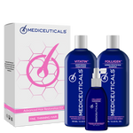 | Комплектът против косопад и за стимулиране на растежа на косата за жени с фина до нормална коса Mediceuticals Advanced Hair Restoration Kit - Fine, Thinning Hair съдържа: Шампоан против косопад и за стимулиране на растежа на косата за жени с фина до нормална коса Mediceuticals Folligen Normal Scalp & Hair Shampoo 250 мл Хидратиращ балсам против косопад и за стимулиране на растежа на косата за жени Mediceuticals Vitatin Moisturizing Conditioner 250 мл Биоактивен спрей против косопад и за стимулиране на фоликулите за жени Mediceuticals Cellagen Follicle Revitalizer 125 мл |