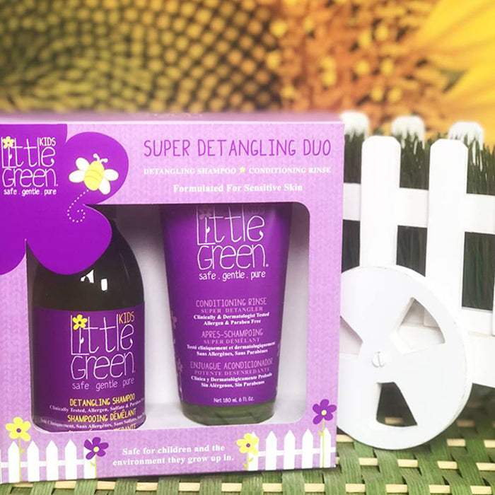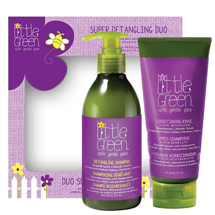 1. Шампоанът за къдрава коса за деца 240 мл Little Green Detangling Shampoo е с хидратиращи и подхранващи растителни екстракти. Измива косата, като улеснява разресването на заплетени зони. Подходящ е за деца с къдрави, тънки, заплитащи се коси, като дефинира жизнени, блестящи, меки къдрички. Начин на употреба: Нанесете върху мокра коса, започвайки от краищата. Масажирайте до образуване на пяна и внимателно прокарайте пръсти през заплетените зони, за да ги разплетете. Изплакнете с вода.