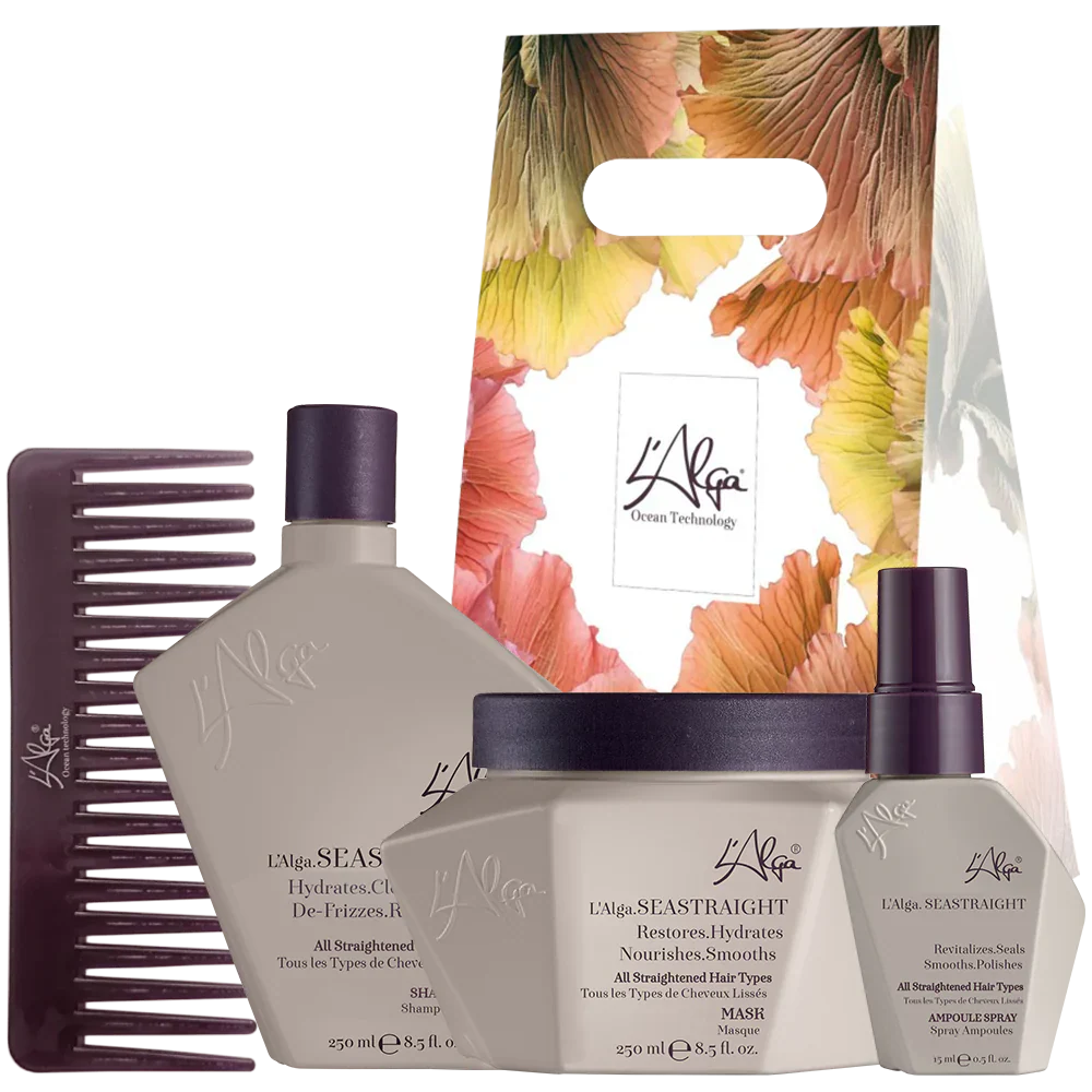 Маска SEASTRAIGHT възстановява, хидратира и изглажда косата. Формулирана с ниско pH, затваря кутикулата на косъма, като по този начин прави косата перфектно гладка и с ламиниран блясък. Запазва косата изправена за по-дълго. Само след едно използване, непокорната и трудна за оформяне коса е видимо по-лесна за оформяне, по-мека, гладка и лъскава. Усъвършенствана формула с революционния комплекс AlgaNord5™, в комбинация с хиалуронова киселина, термоактивен сусамов протеин и 7 кондициониращи агента осигуряват мека, огледално блестяща и здрава на вид коса, без стърчащи краища. Защитава цвета на боядисаната коса от избледняване.