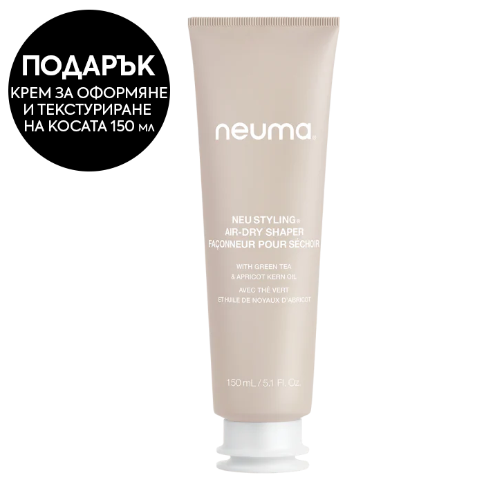 Подарък! Крем за оформяне и текстуриране на коса 150 мл NEUMA Neu Styling Air Dry Shaper - подобрява естествената текстура на косата, без необходимост от изсушаване със сешоар. Придава плътност, мекота и блясък, като осигурява контрол на прическата. Разделя косъмчетата, без да ги слепва, подхранва и изглажда. Air-Dry Shaper осигурява перфектната естествена прическа.