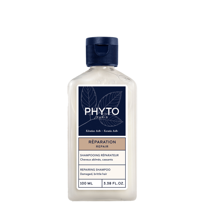 Шампоанът PHYTO Repairing Shampoo нежно почиства увредената, накъсана коса и я възстановява отвътре. Защитава и изглажда косата, като намалява накъдрянето, благодарение на „Кератин A18+“, екстракта от слънчоглед и танини от Тара, оставяйки косата красива, гладка и бляскава. Съдържа 92% съставки от естествен произход. Не съдържа силикони, феноксиетанол и полиетилен гликол.