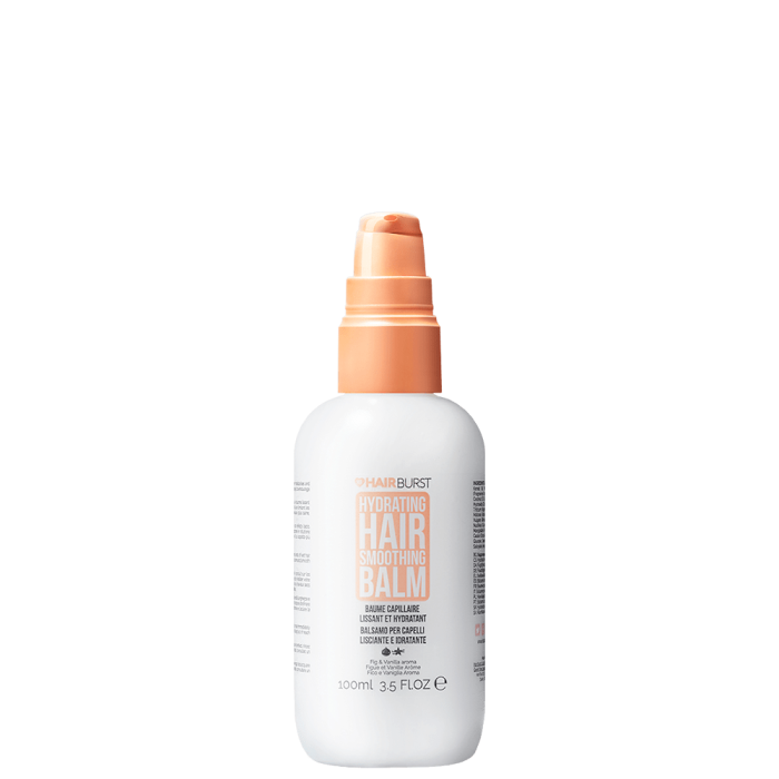Hairburst Hydrating Hair Smoothing Balm е дълбоко хидратиращ балсам без отмиване. Хибридната текстура на олио и серум навлиза в косъма в дълбочина, като го подхранва и цялостно подобрява състоянието на увредената и суха коса. Има анти-фриз ефект и прави косата по-здрава, по-гладка и мека. Формула, обогатена с екстракт от папая, кокос, смокиня, манго и какао.