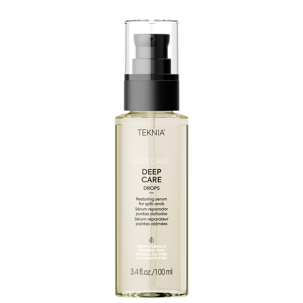 Серумът за възстановяване на краища LAKME TEKNIA Deep Care Drops подхранва увредените краища на косата. Възстановява и изглажда. Създава защитна бариера, която увеличава еластичността. Изглажда косата и я изпълва с мекота и блясък. Има дълбоко подхранващ ефект без да утежнява косъма. Косата е с 35% по-устойчива срещу накъсване.