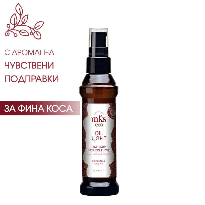 Еликсир Light Original дава на тънката коса ударна доза здравина, защита, копринена мекота, перфектна гладкост и впечатляващ блясък, без да я утежнява. Видимо намалява накъсването на дължините, запечатва цъфтящите краища и съкръщава наполовина времето за изсушаване. Елиминира статичното електричество и предпазва цвета на боядисаната коса от избледняване. Формулата му е на основата на мощна комбинация от две от най-ценните масла в света - арганово масло от Мароко и конопено масло, които осигуряват цялостно ревитализиране. Само няколко капки от ефективния еликсир са достатъчни, за да въвърнат естествените блясък и мекота на косата.