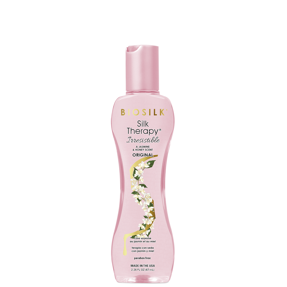 Коприната за коса BioSilk Silk Therapy Irresistible е вдъхновена от неустоимия дух на жената, сияеща отвътре. Тя възстановява структурата на косъма и увредените учасъци само с няколко капки. Неутежняваща формула, подходяща за всеки тип коса, дарява косата с мекота, жизненост и копринен блясък. Отличителният за серията аромат на жасмин и пикантен мед дават усещането за женственост и самоувереност.