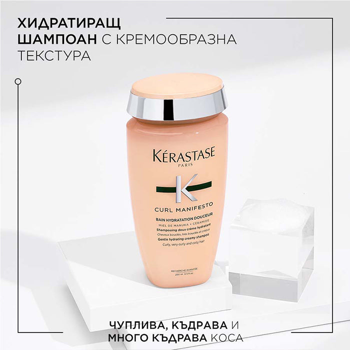 Curl Manifesto Bain Hydration е хидратиращ крем-шампоан, подходящ за всички видове къдрици. Той е нежен към косата и скалпа и почиства всички замърсявания. Осигурява оптимални нива на хидратация, без да утежнява къдравата коса. Помага за възвръщане на формата и еластичността, като придава обем и отлично дефинира къдриците.