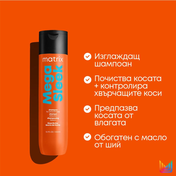 Шампоан Matrix TR Mega Sleek – почиства нежно, подхранва и изглажда непокорна коса.