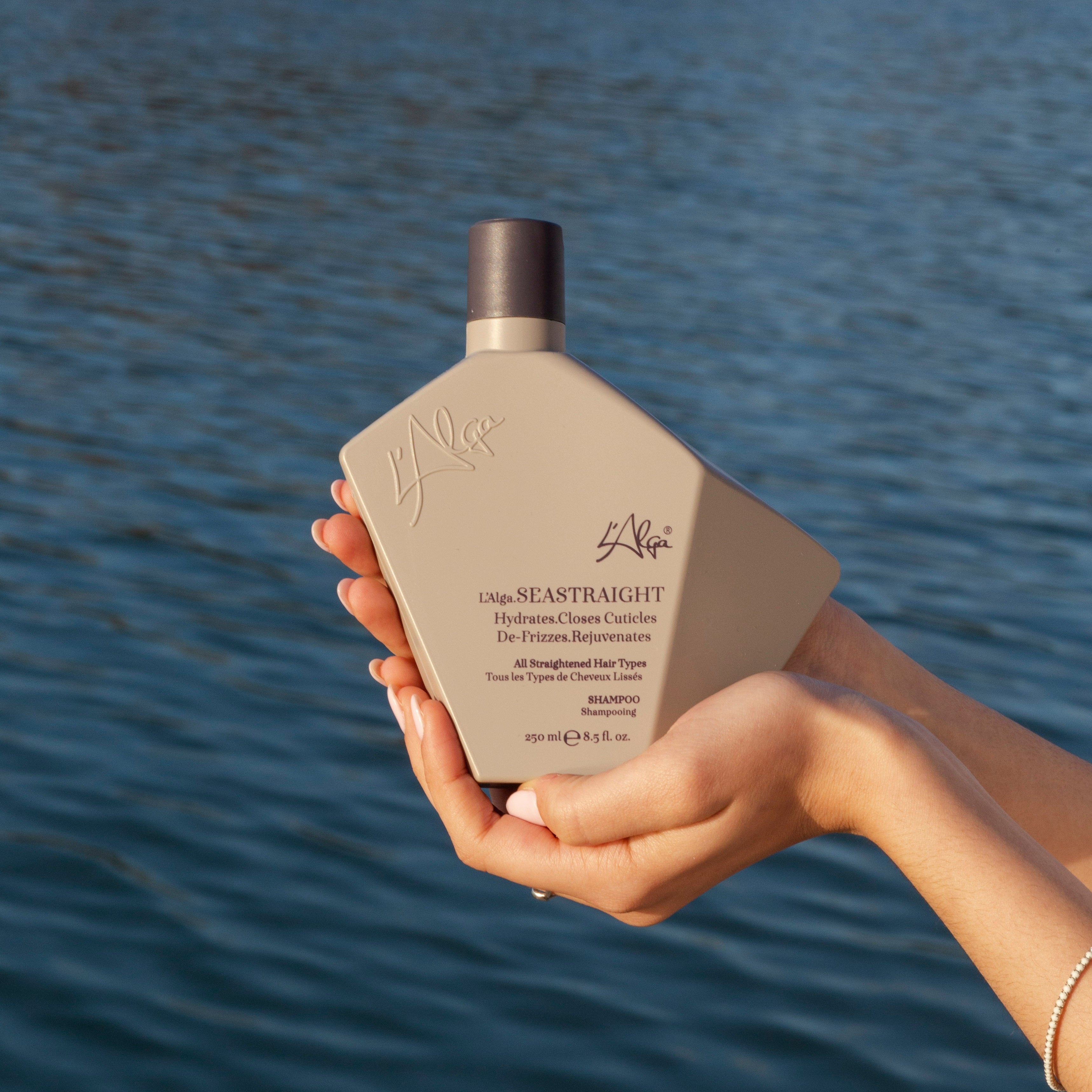 Шампоан SEASTRAIGHT изглажда и възстановява, докато нежно почиства косата и скалпа от замърсяванията. Затваря кутикулата на косъма, като по този начин прави косата перфектно гладка и с ламиниран блясък. Запазва косата изправена за по-дълго и хидратира в дълбочина. Усъвършенствана формула с революционния комплекс AlgaNord5™, в комбинация с хиалуронова киселина, термоактивен сусамов протеин и 7 кондициониращи агента осигуряват мека, огледално блестяща и здрава на вид коса, без стърчащи краища. Защитава цвета на боядисаната коса от избледняване. Деликатен към кожата на скалпа – не предизвиква раздразнения.