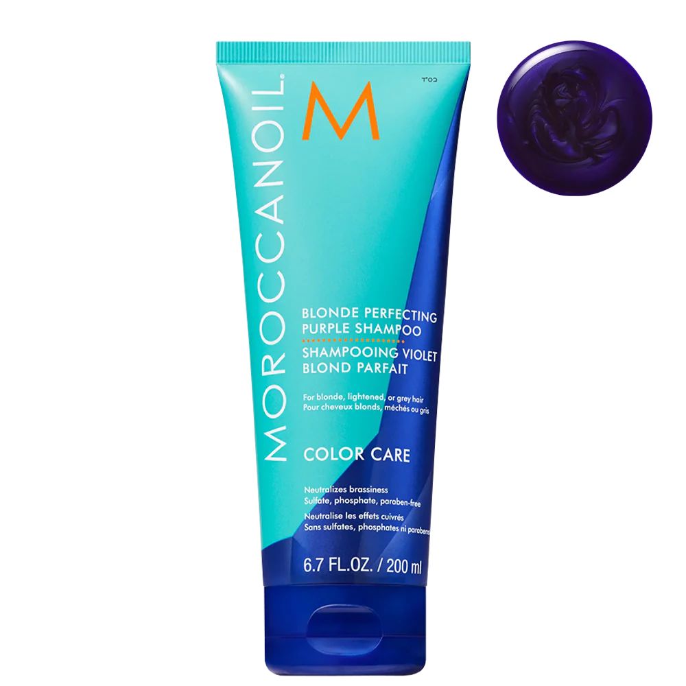 Тониращият шампоан без сулфати Perfecting purple коригира цвета на русата коса, като неутрализира топлите оттенъци. Нежната му формула почиства, без да изсушава, благодарение на технологията Moroccanoil ArganID® , която защитава цвета и същевременно спомага за запечатването на кутикулата, като придава брилянтен блясък на косата. Косата е защитена отвътре навън, а желаният цвят е постигнат, благодарение на виолетовите пигменти в състава на шампоана.