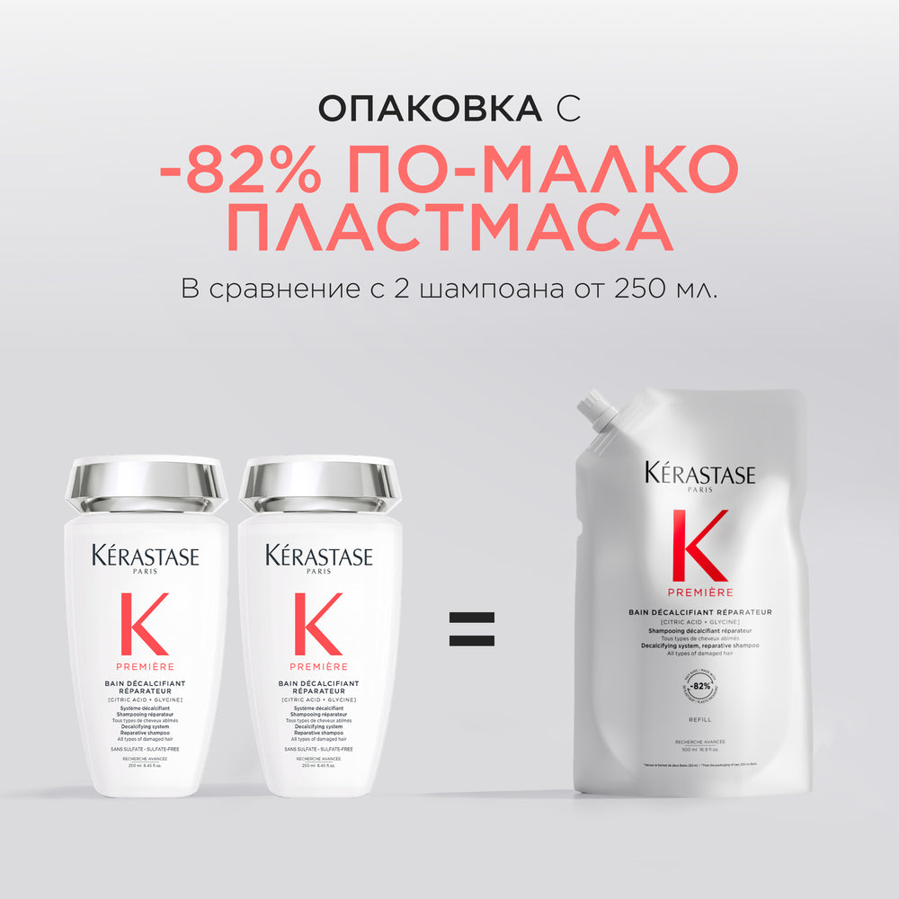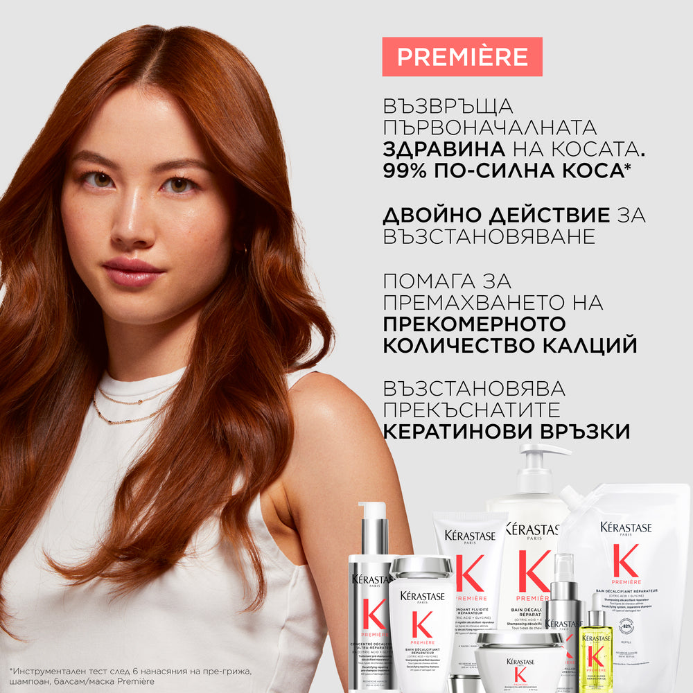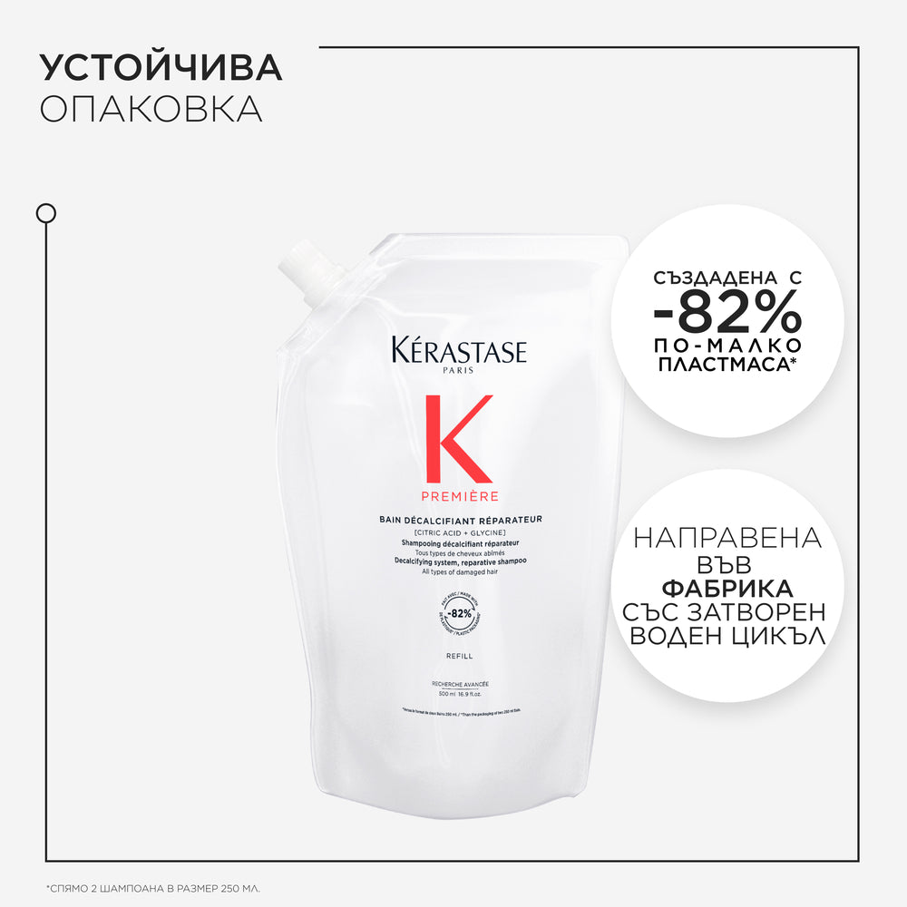 Пълнител за декалциращ възстановяващ шампоан за увредена коса Premiere Bain Décalcifiant Réparateur Shampoo е богат шампоан с двойно действие, който премахва калция и укрепва и възстановява увредената коса.