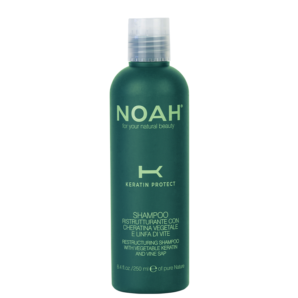 Реструктуриращ шампоан Keratin, подходящ за увредена коса с растителен кератин и екстракт от грозде от лозята на италианските хълмове. Почиства отлично замърсяванията от косата и скалпа. Растителният кератин укрепва косъма, предотвратявайки цъфтящите краища и последващото накъсване на косата. Екстрактът от грозде възстановява увредената коса, повишавайки нейната еластичност. Резултатът е здрава на вид, огледално лъскава и възстановена коса.