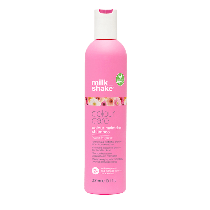 Шампоан за боядисана коса с аромат на цветя Milkshake Flower Power Color Maintainer Shampoo е нежен шампоан, който хидратира и защитава цвета на боядисаната коса. Формулиран е с екстракт от моринга и соев протеин с подхранващи и защитни свойства. Ексклузивната съставка Integrity 41® увеличава стабилността и издръжливостта на цвета. Без парабени. Подходящ за боядисана коса.