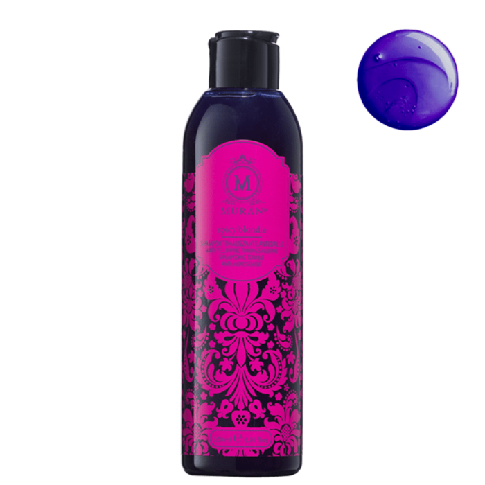 Шампоанът за руса коса Spicy Blondie Anti-Yellowing Toning Shampoo нежно почиства скалпа и косата, като премахва нежеланите жълти и оранжеви оттенъци. Идеално освежава студените тонове на изрусената коса и придава цялостен блясък. В състава си съдържа екстракт от ценното растение алое вера, което хидратира в дълбочина изрусената коса.