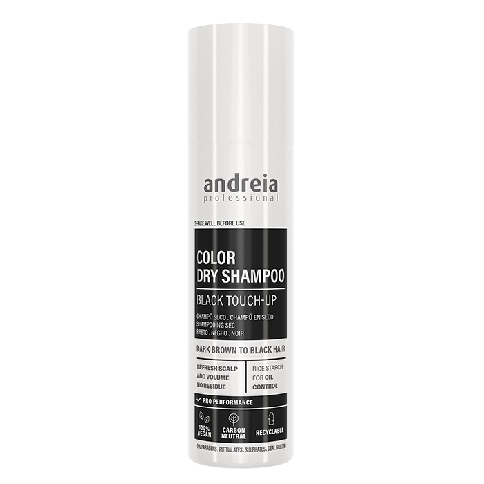 Веган шампоан за сухо измиване, за тъмно кафява и черна коса. Формулата с добавен цвят спомага за изравняването на цвета на косата. Съдържа фино оризово нишесте, което мигновено абсорбира мазните натрупвания и неприятните миризми, в резултат на което косата е чиста и свежа. Предназначен за тъмно кафява и черна коса, шампоанът отлично прикрива плешивите петна, сивите коси и белите корени. Oсигурява допълнителен обем и текстура, без да оставя остатъци. Специално създаден да контролира омазняването, Color Dry Shampoo Black ефективно почиства косата, освежава скалпа и придава допълнителен обем.