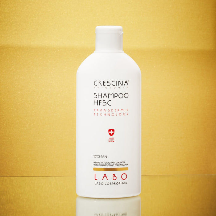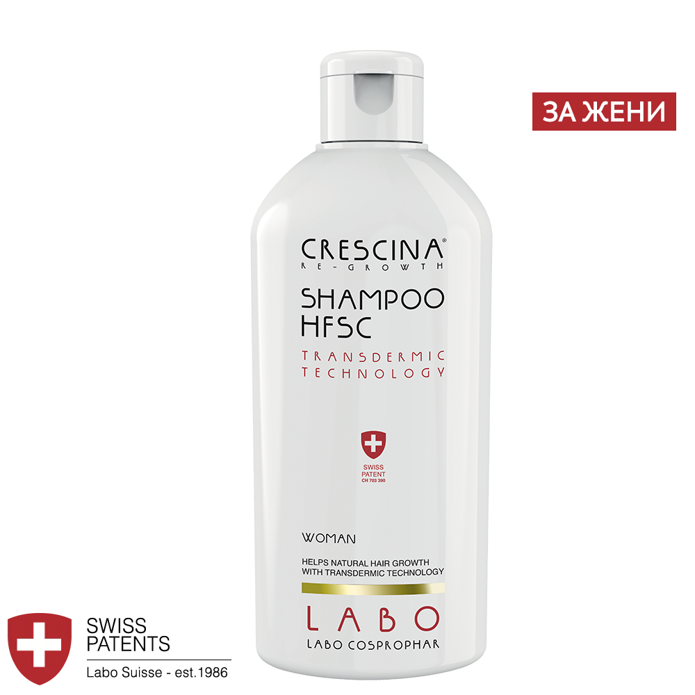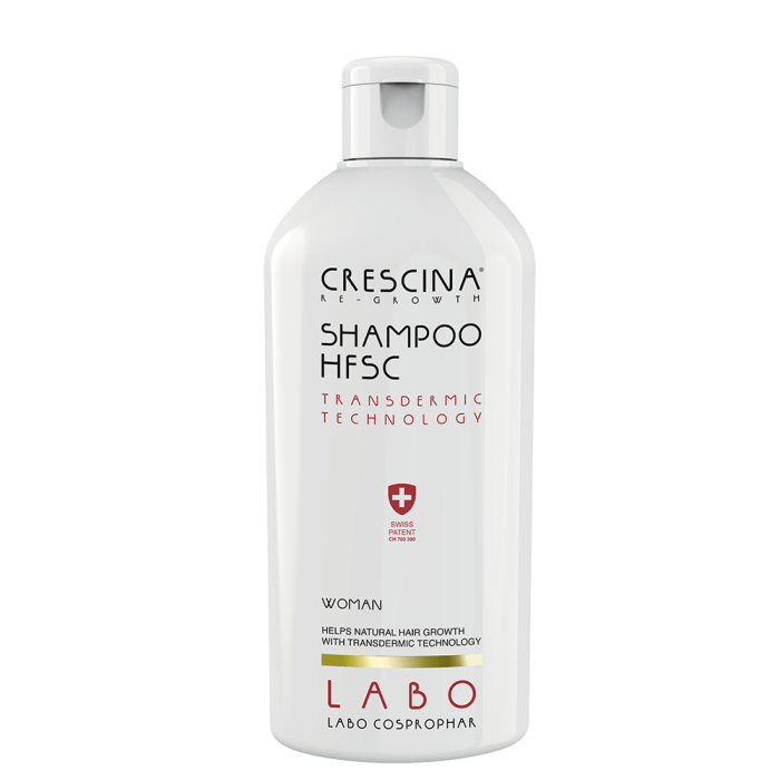 Crescina Transdermic HFSC Re-Growth Shampoo Women е специален шампоан, създаден да възстанови растежа при оредяваща и изтъняваща коса, формулиран за жени. Формулата се основава на трансдермалната технология на Labo, при която активните молекули проникват в косъма не само по трансфоликуларен път (през отвора на фоликула), но и трансдермално, т.е. през кожните слоеве на скалпа – епидермис и дерма. Благодарение на ниското молекулно тегло на активните съставки, те проникват лесно и ефективно. Формулата съдържа: Re-Growth комплекс (Cysteine, Lysine, Glycoprotein, Stem-Engine) и 3 подобрителя (Pentylene Glycol, Decylene Glycol, Caprylyl Glycol). Почистващата му формула е идеално допълнение към терапиите Crescina Transdermic HFSC за локално приложение в ампули. Специална формула за жени.