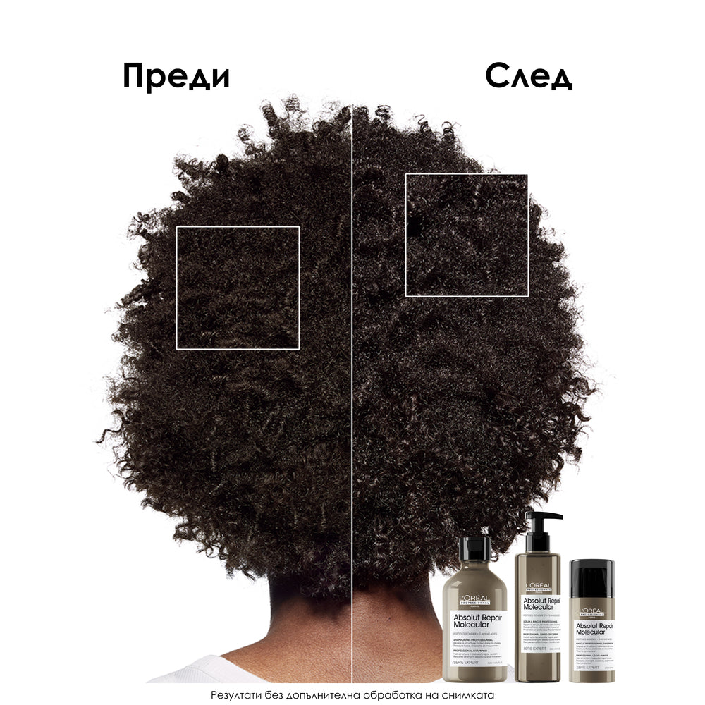 **Потребителски тест след 2 седмици употреба на шампоан, серум с изплакване и маска без изплакване Absolut Repair Molecular.