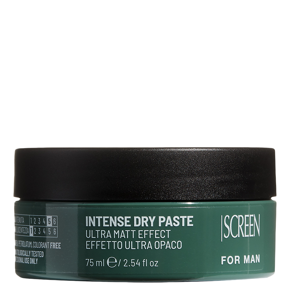 Intense Dry Paste е силно фиксираща паста за коса с матиращ ефект. Моделира и оформя небрежни и естествени прически, без да утежнява. Придава допълнителен обем и текстура. Прическата издържа през целия ден, благодарение на дълготрайната фиксация.