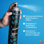 Професионалният бързосъхнещ спрей за оформяне Matrix Vavoom Extra Full Freezing Spray е модерен продукт с двойно действие. Може да се използва като текстуриращ стилизант и сух шампоан. Повдига и фиксира стайлинга в продължение на 24 часа и осигурява впечатляващ сатенен блясък. Устойчив на влага и фриз, спреят ще придаде продължителна енергичност на прическата, без да позволи накъдряне и отпускане. Може да се използва и като сух шампоан за премахване на омазняването в корените - освежава, повдига и придава обем от основата на косъма. Притежава фина и бързосъхнеща формула, която перфектно структурира косъма. Продуктът не утежнява, не слепва и не оставя неприятно усещане за натрупване по косъма. Крайният резултат е еластична коса с естествена жизненост, заключена в стабилен и добре оформен стайлинг.