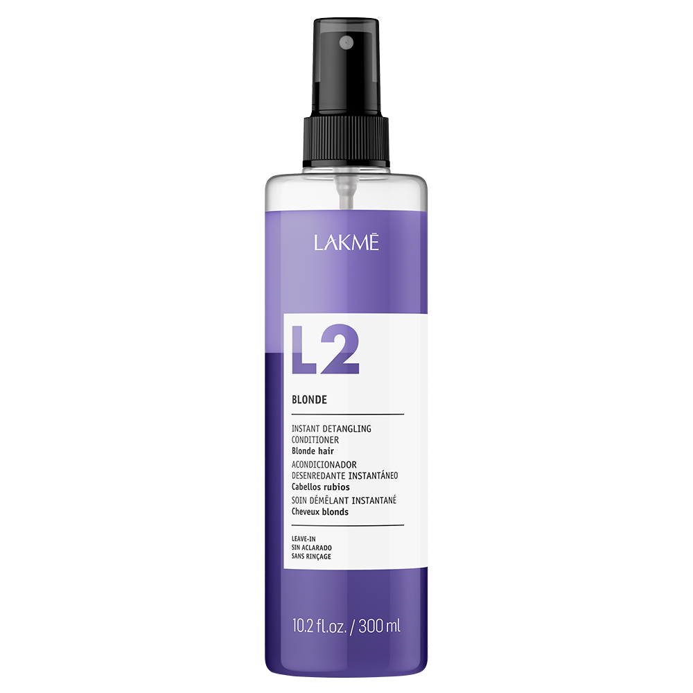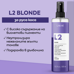 Двуфазен балсам без изплакване за руса коса LAKME L2 Blonde Instant Hair Conditioner е с високо съдържание на виолетови пигменти, които освежават цвета, подчертават светлите руси нюанси и неутрализират нежеланите жълти тонове. Подхранва и възстановява мекотата, блясъка и еластичността, без да утежнява и матира. С лека формула, която таргетира най-чувствителните зони на косъма, осигурявайки мигновено разплитане и лесно разресване. Елиминира фриз ефекта, намалява накъсването и цъфтежа и защитава косъма от външни увреждания. Резултатът е гладка, блестяща, копринено мека и лесна за разресване коса с огледален блясък. Подходящ за руса коса.