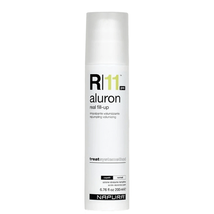 Хидратиращ крем за обем за нормална коса Napura R11 Pre Aluron Real Fill-Up подобрява цялостното състояние на косата. Той включва в състава си два вида хиалуронова киселина. Тя насища с високи нива на влага, като регенерира щетите по дължините.