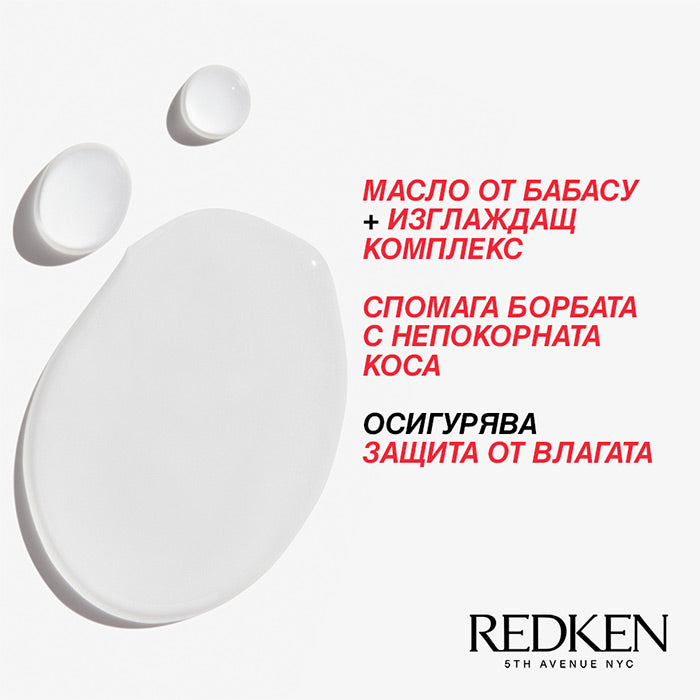 Изглаждащо олио без изплакване за изглаждане и укротяване на непокорната коса и контрол над нея при влажно време . Неутрализира фриза и статичното електричество, като прибира стърчащите косъмчета, без да утежнява косата. Придава мекота и блясък и прави косата податлива на оформяне. Спреят има устойчивост на влага и предпазва косата от хвърчене във всички страни.
