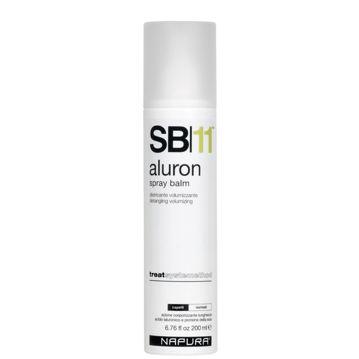 Спреят за обем и изглаждане Napura SB11 Aluron Spray Balm е продукт с изключително богата формула, която има свойствата не само да повдигне кичурите още от корените, но и да ги възстанови по цялата дължина. В състава му влиза хиалуронова киселина. Тя изпълва косата с влага и я прави значително по-плътна, което от своя страна допринася за повишаване на обема. Ревитализира косъма и премахва сухия и повяхнал вид. Бадемовите протеини се свързват с кератиновата структура на косъма, за да я укрепят и регенерират.