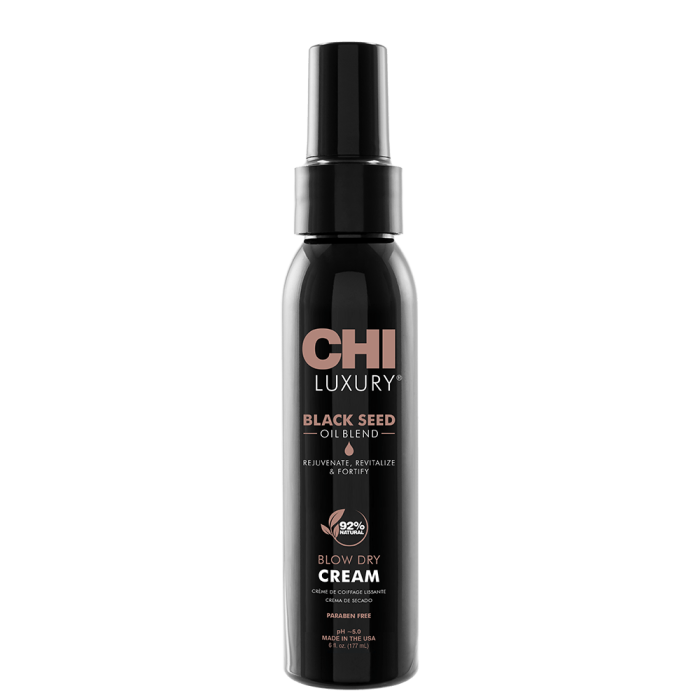 Крем за изсушаване на косата Luxury Black Seed Oil е перфектният продукт за изсушване на косата, който я изглажда и омекотява, като същевременно ѝ придава невероятен блясък, благодарение на съдържанието на безценното масло от черен кимион. Предотвратява заплитането на косата и приглажда хвърчащите косъмчета. Предпазва прическата от деформиране при влажно време и защита от увреждане по време на топлинна обработка. Косата е лъскава и гладка през целия ден.