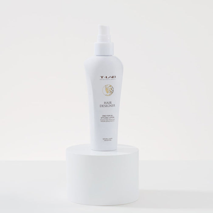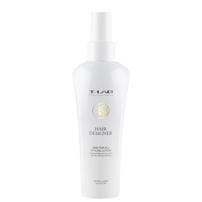 Лек стилизиращ спрей-лосион T-LAB Hair Designer One-for-All Styling Lotion е създаден да осигури желаната текстура на косата. Подходящ за всеки тип коса, изключително ефективен при непокорна, суха и чуплива коса. Оформя, изглажда, укротява, хидратира и възстановява мекотата. Превръща неконтролируемата коса в податлива и подхранена. Подсилва естествената структура, плътност и текстура, като поддържа прическата на място с гъвкава естествена фиксация. Може да се използва вместо гел, помада или восък за оформяне на косата.