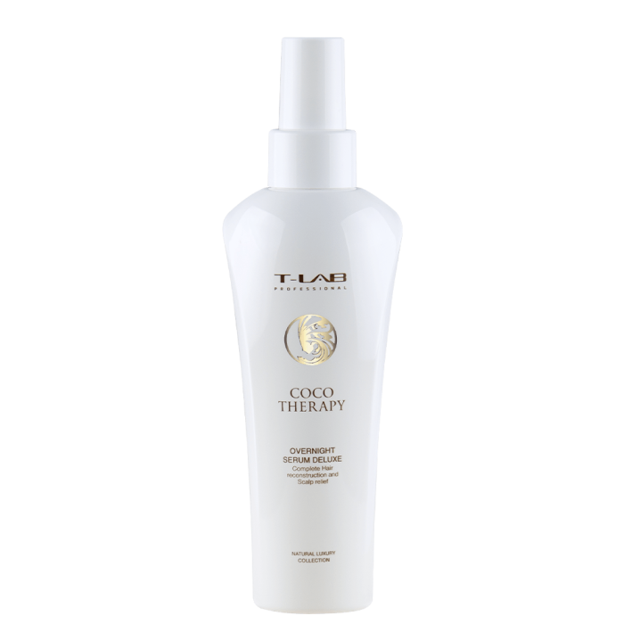 Нощен серум делукс с кокос T-LAB Coco Therapy Overnight Serum Delux осигурява цялостно реконструиране на косата и облекчаване на скалпа. Подходящ за всеки тип коса, нощният серум спомага за заздравяването на скалпа и предотвратяване на накъсванията и уврежданията. Създаден с уникален натурален комплекс, базиран на сертифицирани органични съставки. Предоставя на скалпа и косата дълбока хидратация и възстановяване на вътрешната структура на косъма. Съдържа 96% натурални съставки.