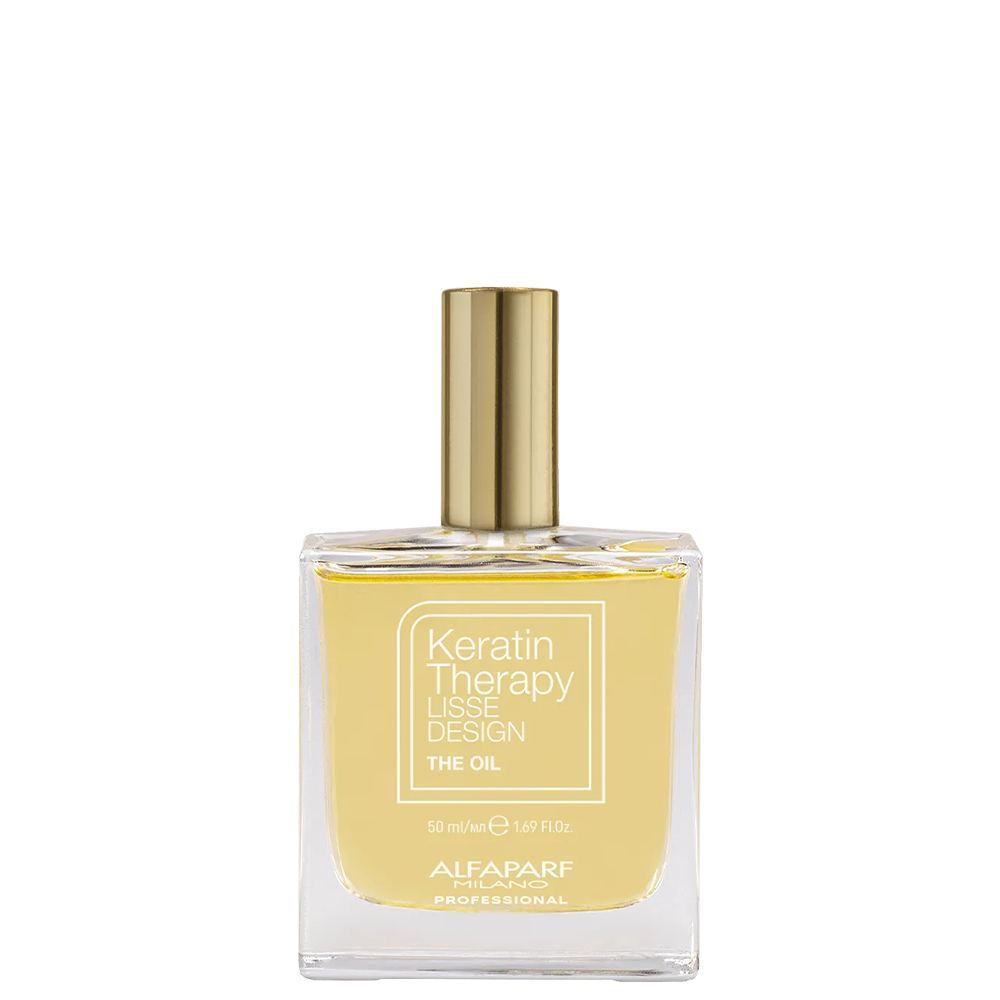 Олио за подхранване Alfaparf Lisse Design 50 мл e подходящо за всеки тип коса. Серията Keratin Therapy e създадена за подхранване, изглаждане и омекотяване на косата. Немазна формула на основата на олио от бабасу и кератин комплекс правят косата копринено мека. Премахва сухотата на косата, предотвратява цъфтежа и накъсването. Разплита косата и улеснява разресването.