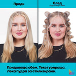 Нанесете върху корените на суха коса, за да придадете обем и допълнителна фиксация на стайлинга.