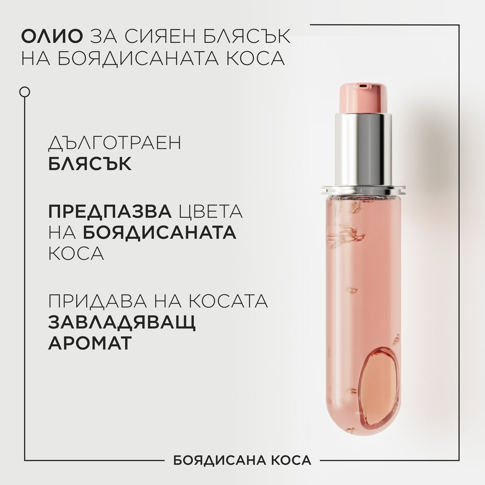 Осигурява дълготраен блясък на боядисаната коса. Обогатено с екстракт от растението Центела Азиатика, известно с регенериращите си лечебни свойства, то помага за предпазването на цвета на боядисаната коса и ѝ осигурява дълготраен луксозен аромат. Продукт в опаковка, направена от 95% рециклирана пластмаса*.