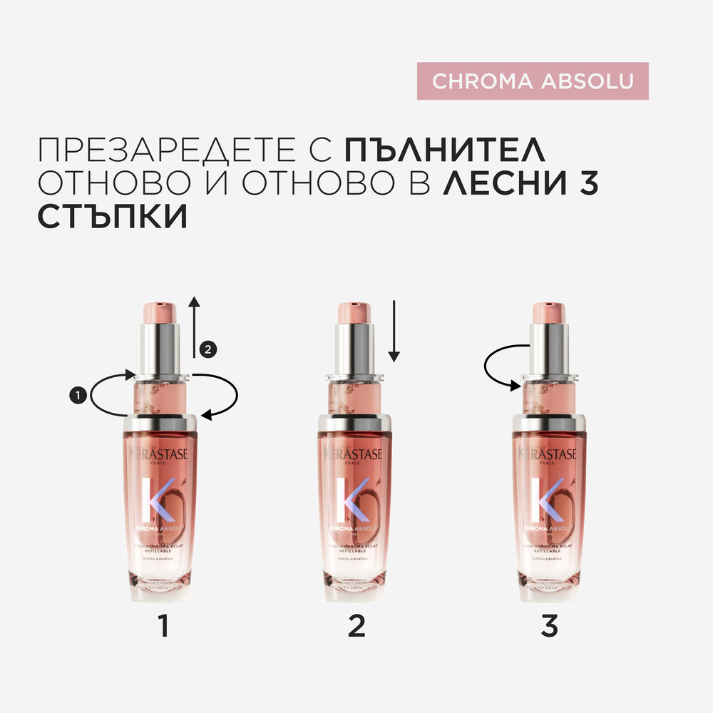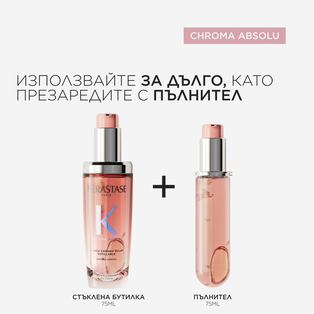 Пълнител за олио Chroma Absolu Éclat Radiance, подходящо за всеки тип боядисана коса.
