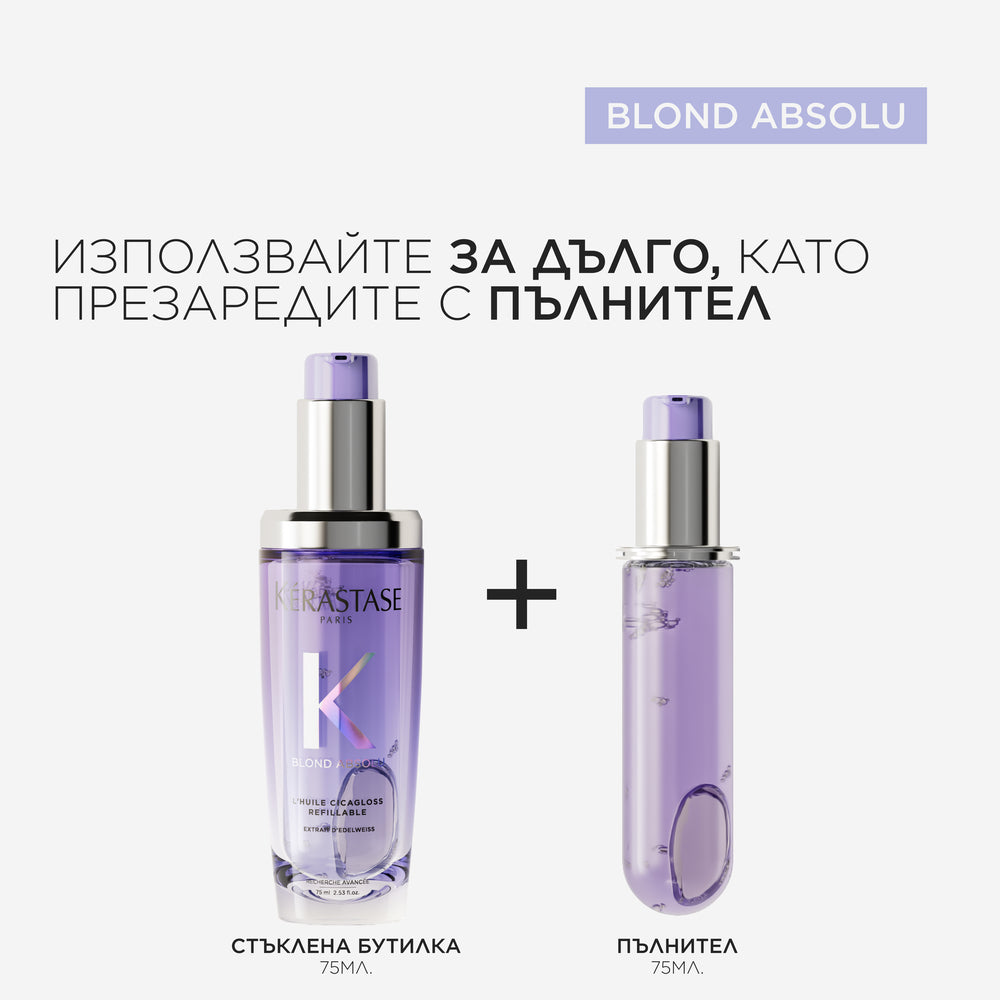 Пълнител за олио за коса Blond Absolu Cicagloss, подходящо за всеки тип руса и изсветлена коса.