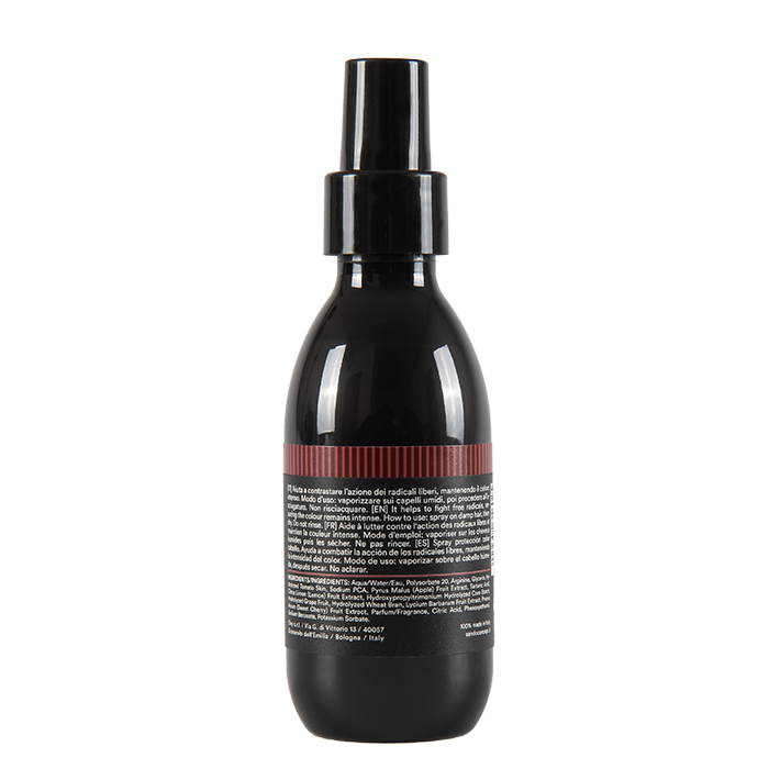 Color Protection Hair Spray е натурален спрей, който подхранва и защитава цвета на боядисана коса от избледняване. Предпазва от вредното въздействие на свободните радикали, благодарение на своите антиоксидантни свойства, които поддържат цвета ярък и наситен задълго. Резултатът е хидратирана, жизнена, лъскава, с интензивен и сияен цвят боядисана коса.