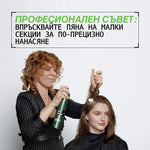 За максимален ефект и обем нанесете върху леко влажна, подсушена с кърпа коса. Разделете на сектори и нанесете в корените. Изсушете косата и се наслаждавайте на жизнен обем през целия ден.