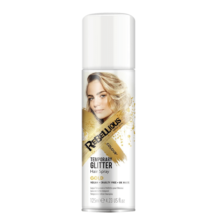 Rebellious Colour Temporary Glitter Hair Spray Gold е спрей, който покрива косата с воал от блестящи златисти частици, създавайки неотразима и бляскава визия. Той има фиксиращ ефект, като не утежнява косата. Може да се напръска върху цялата коса или на отделни кичури. Идеален е както за специални събития и партита, така и за моментите, когато искате да добавите малко блясък към ежедневния си стайлинг. Нанася се лесно и издържа до следващото измиване.
