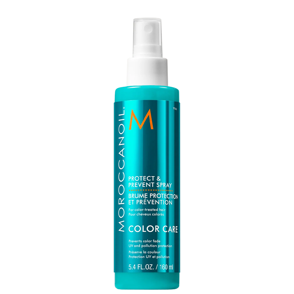 Комбинацията от антиоксиданти в този основен щит за цвета, неутрализира дори най-агресивните свободни радикали, генерирани от UV лъчите, замърсяванията и други фактори от околната среда. Едновременно с това, слънцезащитният фактор абсорбира UV лъчите, които отслабват косата и карат цвета да се променя и избледнява. Спреят на Moroccanoil защитава от термичните вреди на горещите инструменти и дори на слънцето, с помощта на технологията с микро-капсули ArganID™ и така възстановява и запечатва кутикула, задържайки цвета. Спреят за защита Protect & Prevent също действа като безтегловен спрей за разплитане – прави косата мека и блестяща.