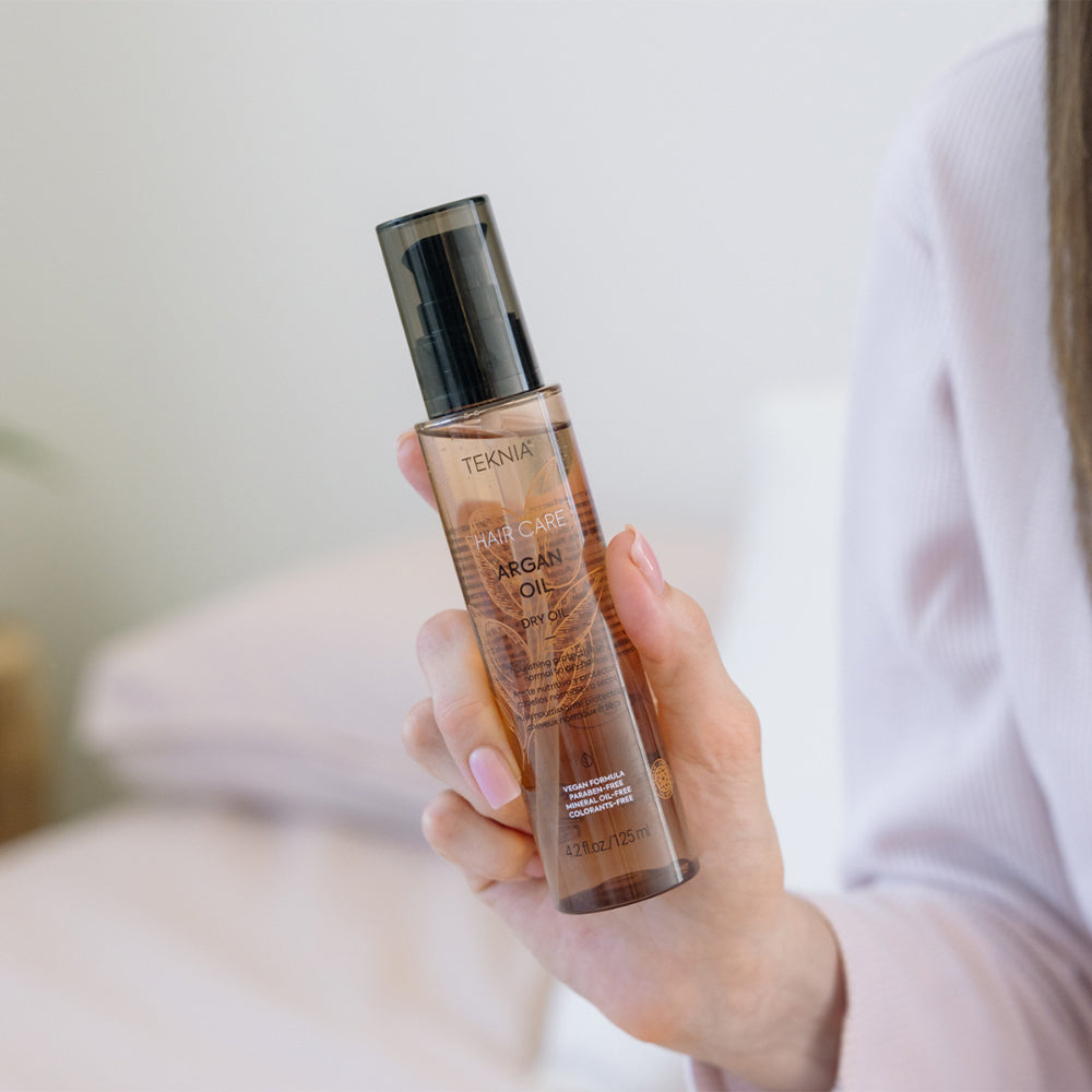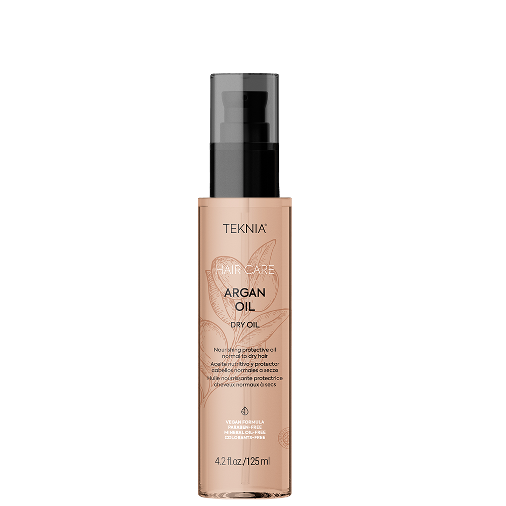 Сухото олио с арган за подхранване на коса склонна към дехидратация LAKME TEKNIA Argan Oil Dry Oil подхранва сухата коса и възвръща нейната мекота и блясък. С лека текстура, която незабавно се абсорбира от косъма и не утежнява. Осигурява следващо ниво на подхранване на косата докато интензивно защитава от загуба на еластичност, накъсване и цъфтеж. Предотвратява пресушаването на хидро-липидния слой на косъма, който се грижи за това косата да е лъскава и гладка, без стърчащи краища. Действа като мощен антиоксидант, който поддържа косата в оптимално здравословно състояние.