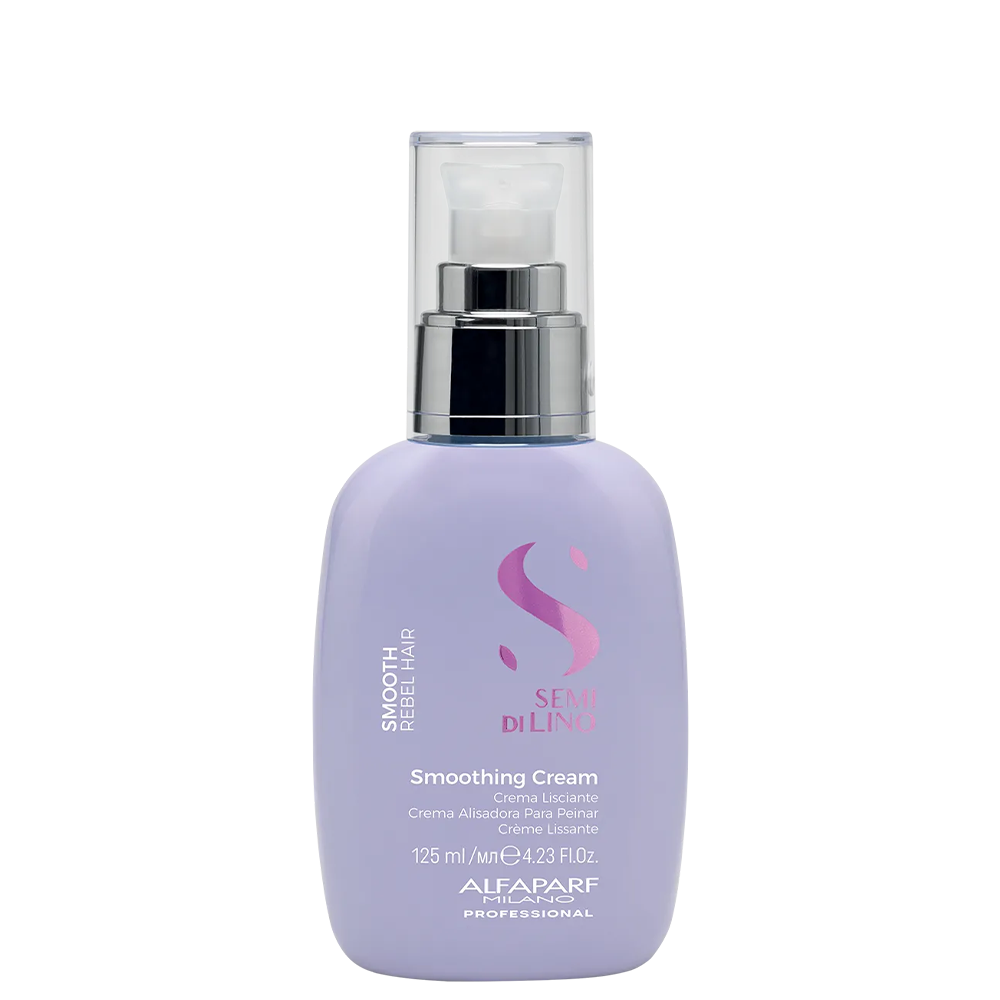 Alfaparf Smoothing Cream е крем, който интензивно изглажда непокорната и хвърчаща коса, като осигурява висока термозащита до 230 ⁰С при изсушаване със сешоар. Хидратира косата в дълбочина, без да утежнява, елиминира фриз ефекта, придавайки ѝ сияен блясък и копринена мекота. Запазва прическата при влажно време. С веган формула, на основата на растителен протеин, кремът, предпазва косата от накъсване и намалява цъфтящите краища с до 98%. Предпазва цвета на боядисаната коса от избледняване (до 9 измивания) и я защитава от замърсяване и увреждане от агресорите на околната среда. В резултат косата е копринено гладка, лъскава, кадифено мека и добре подредена, от корена до върха. Подходящ за ежедневна употреба на всеки тип коса (от тънка до плътна). Притежава натурален аромат с флорално-плодови нотки.