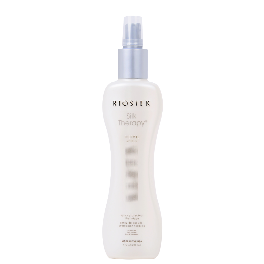 Спреят BioSilk Silk Therapy Thermal Shield Protection създава предпазен щит около косъма, който защитава от топлината на пресата и машата. Улеснява оформянето на прическата и изпълва косата с брилянтен блясък и копринена мекота.