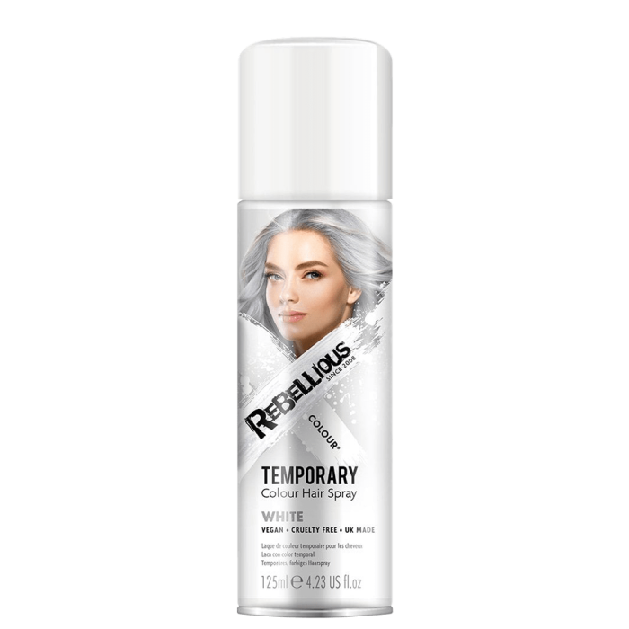 Rebellious Colour Temporary Colour Hair Spray White е спрей в бял цвят, с който лесно може да създадете малки цветни кичури или да оцветите цялата коса. Той има фиксиращ ефект, като не утежнява косата. Идеален е за постигане на креативна и цветна визия. Подходящ е както за специални събития и партита, така и за моментите, когато искате да добавите малко цвят към ежедневния си стайлинг. Нанася се лесно и издържа до следващото измиване.