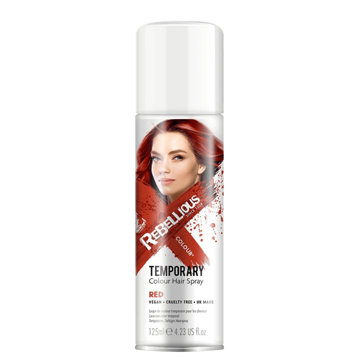 Rebellious Colour Temporary Colour Hair Spray Red е спрей в червен цвят, с който лесно може да създадете малки цветни кичури или да оцветите цялата коса. Той има фиксиращ ефект, като не утежнява косата. Идеален е за постигане на креативна и цветна визия. Подходящ е както за специални събития и партита, така и за моментите, когато искате да добавите малко цвят към ежедневния си стайлинг. Нанася се лесно и издържа до следващото измиване.