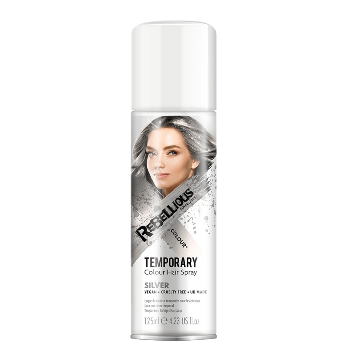 Rebellious Colour Temporary Colour Hair Spray Silver е спрей в сребрист цвят, с който лесно може да създадете малки цветни кичури или да оцветите цялата коса. Той има фиксиращ ефект, като не утежнява косата. Идеален е за постигане на креативна и цветна визия. Подходящ е както за специални събития и партита, така и за моментите, когато искате да добавите малко цвят към ежедневния си стайлинг. Нанася се лесно и издържа до следващото измиване.