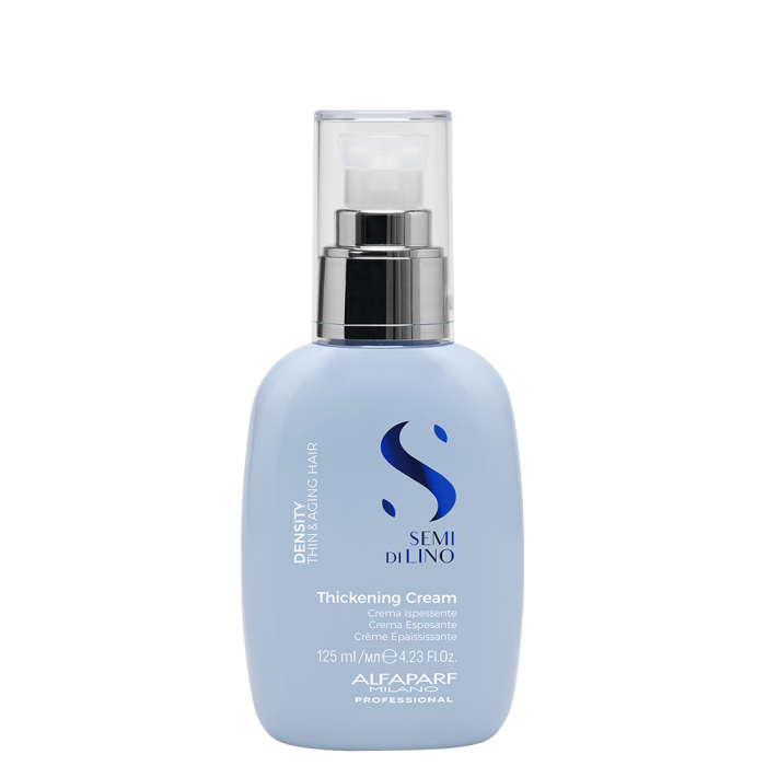 Alfaparf SEMI DI LINO Thickening Cream е уплътняващ крем за тънка и изтъняваща коса. Ревитализира и предпазва косата при термообработка. В резултат, косата е по-плътна, защитена и витална.