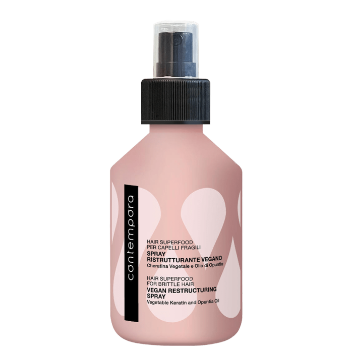 Възстановяващ веган спрей с растителен кератин и масло от бодлива круша Vegan Restructuring Spray 200 мл - веган спрей за реструктуриране на косата. Възстановява и съживява, като заздравява кератиновите връзки в косъма, повишавайки количеството на кератин. Осигурява интензивна хидратация, придава здравина и еластичност. Увеличава плътността, придавайки обем и текстура. Изглажда и затваря кутикулите на косъма, като по този начин постига сияен блясък и съвършена гладкост. Улеснява разресването и предпазва от дехидратация, бъдещо накъсване и цъфтящи краища.
