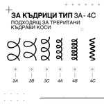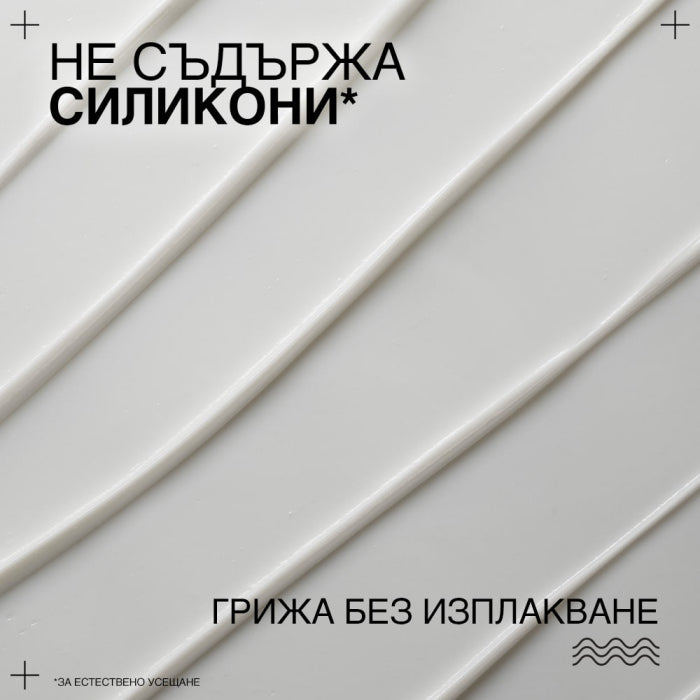 Възстановяваща грижа без изплакване за третирана, увредена къдрава коса, която не съдържа силикони за естествено докосване.