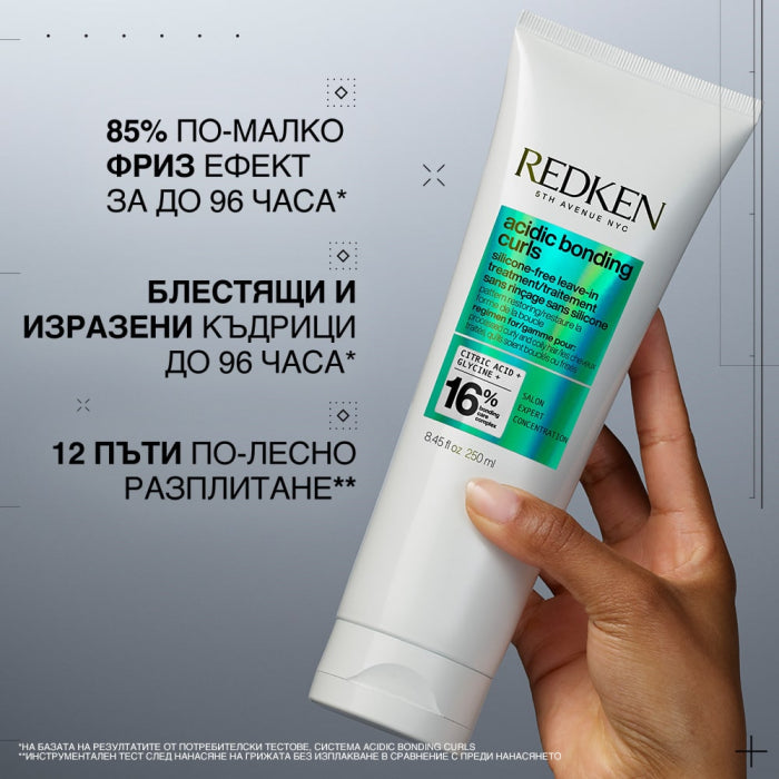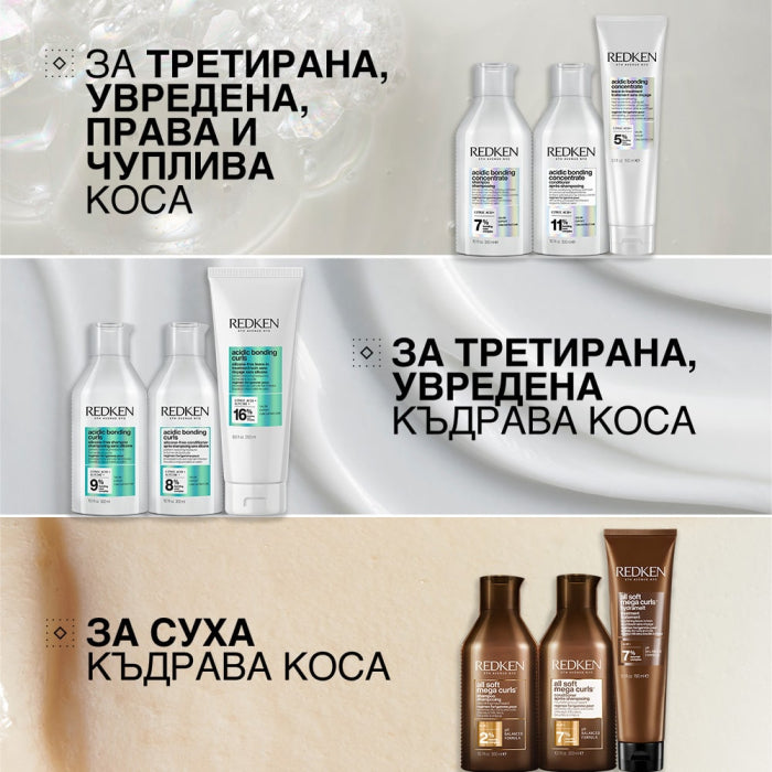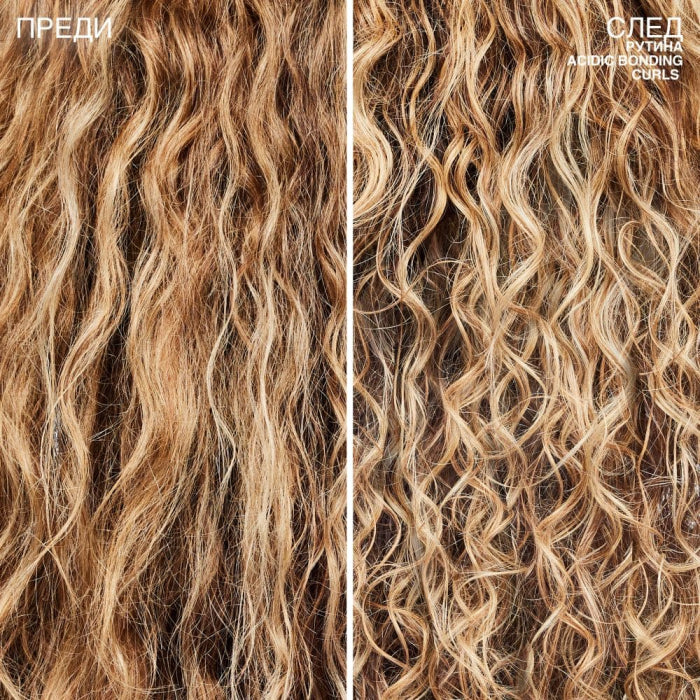 *На базата на резултатите от потребителските тестове, шампоан, балсам и грижа без изплакване Acidic Bonding Curls.