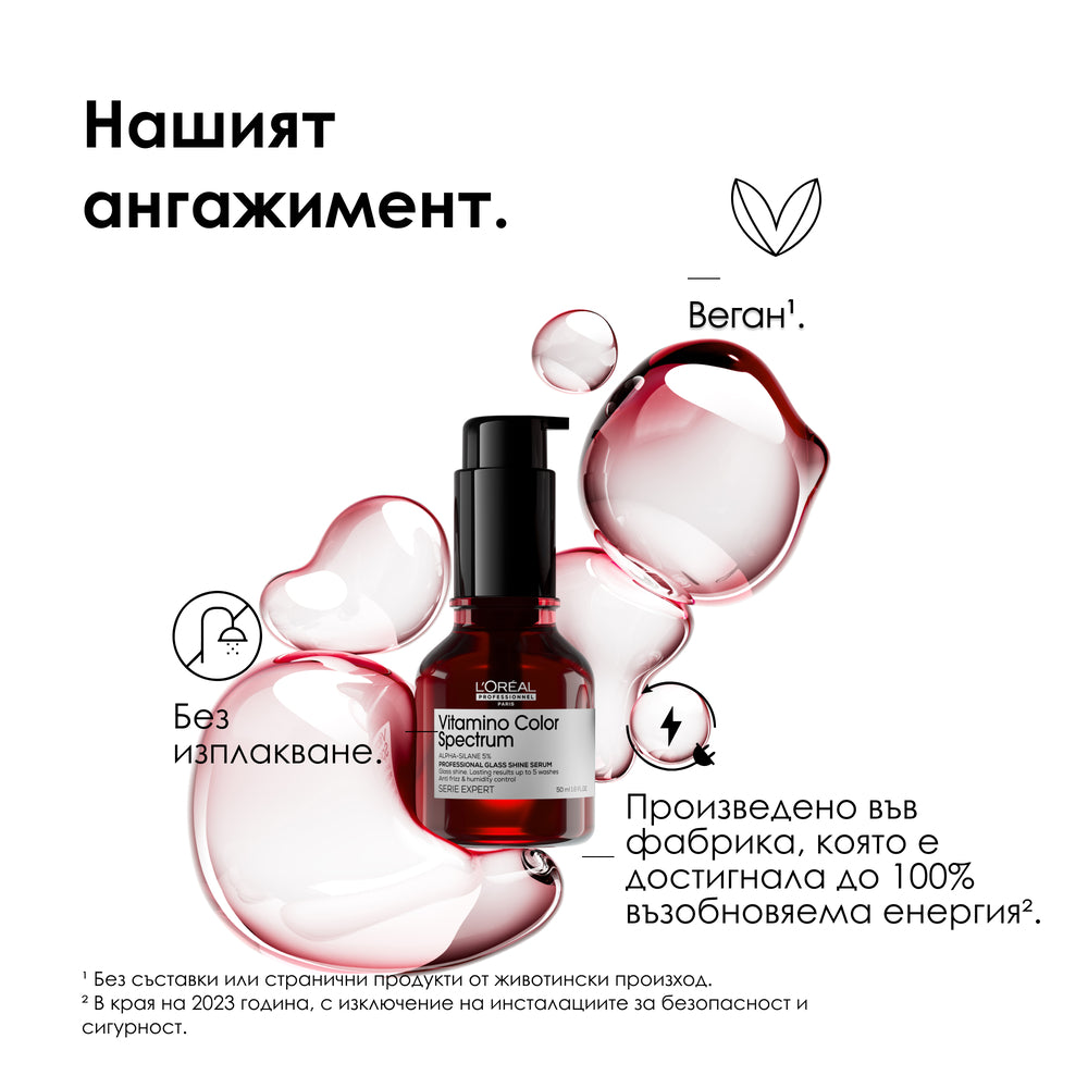 Серум за блясък с прозрачна течна текстура и интензивно действие, за дълготрайни резултати до 10 измивания на косата*. Този продукт е подходящ за грижа за всеки тип боядисана коса. Осигурява топлинна защита до 230°C при употреба на топлинни инструменти, предпазва от фриз ефект, дори при екстремна влажност до 80%, и придава блясък. Запазва сияйността на боядисаната коса. Продукт с концентрирана формула, обогатена с 5% алфа-силан – силно реактивна съставка, която се активира от топлина. Алфа-силанът създава защитен слой около косъма, който издържа до 10 измивания*. Подходящ за всеки тип боядисана коса, особено за ярки, трудни за поддръжка цветове.
